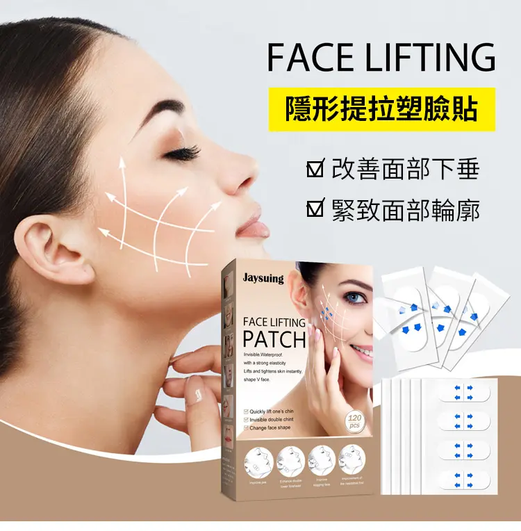 2分鐘前面部提拉瘦臉貼 提拉緊緻,快速擁有小V臉,美美噠超隱形,真的好好看 - 【體驗組】一盒(120貼) 免運費-NT$950