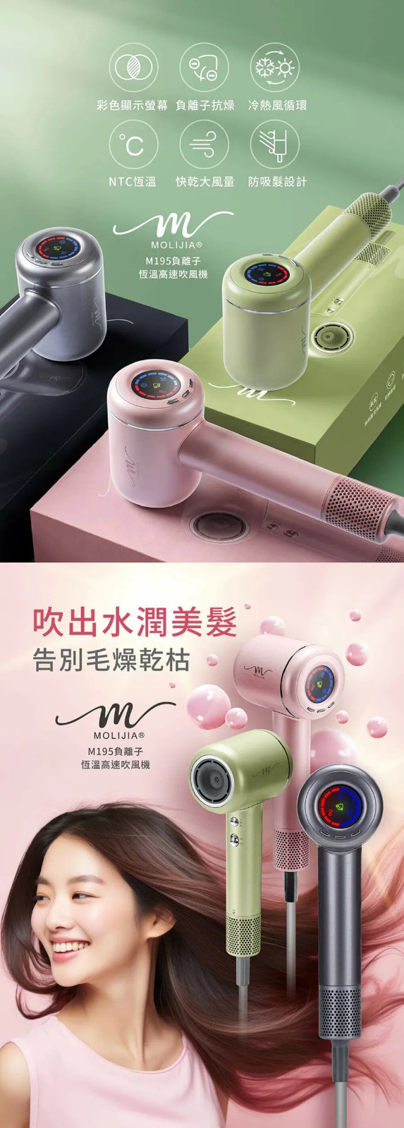 半小時前M195 負離子恆溫高速吹風機 乾髮護髮,一次搞定 - 優惠價二入組NT$1998