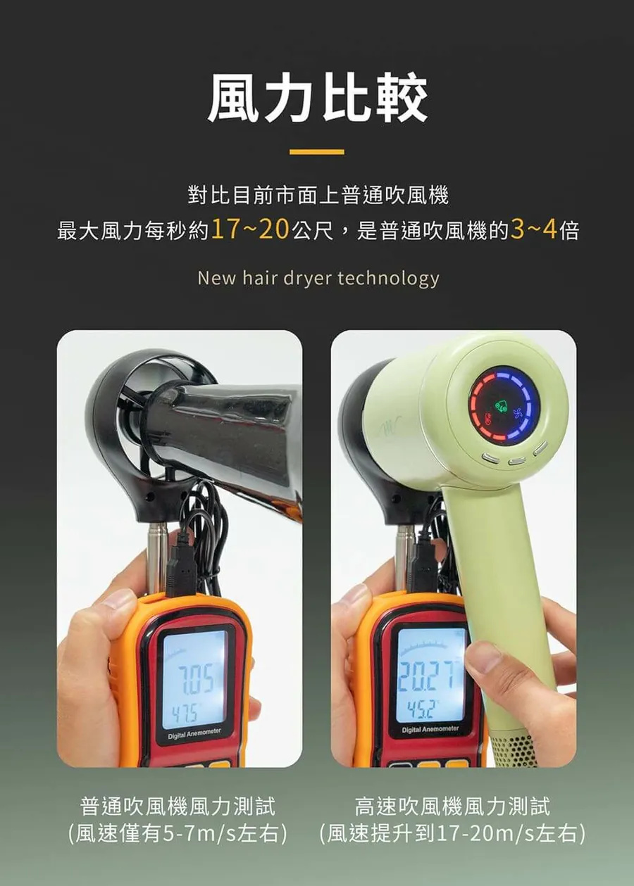 ⭐輕巧低噪音、大風量達17公尺/秒,高效速乾