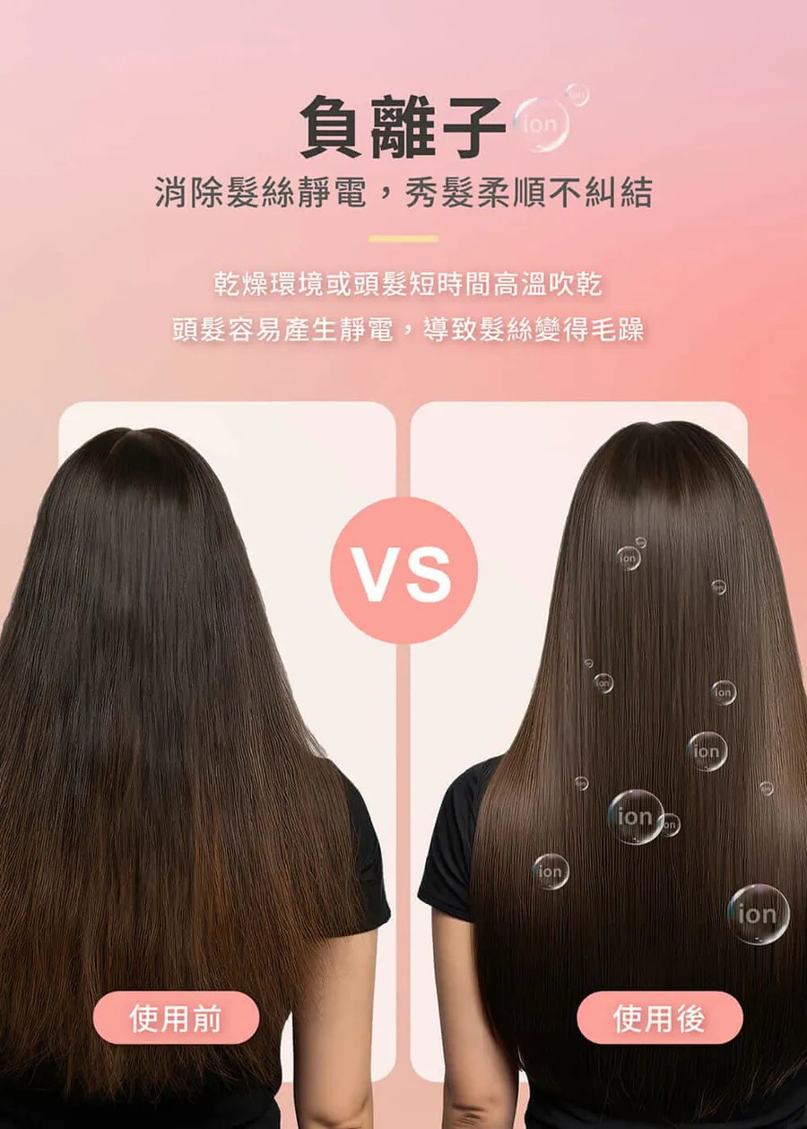 ⭐千萬級負離子設計,讓頭髮不毛躁糾結